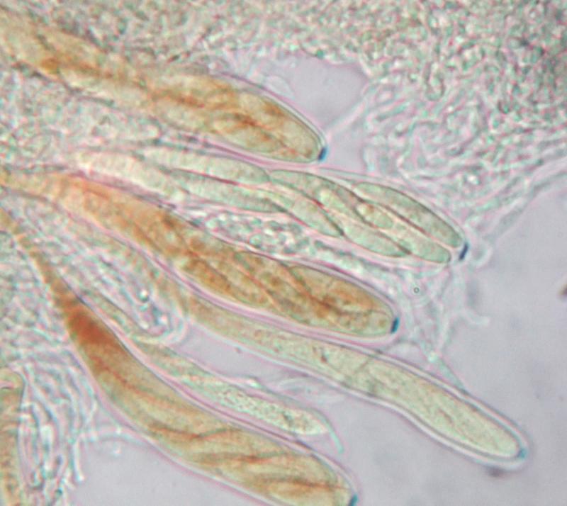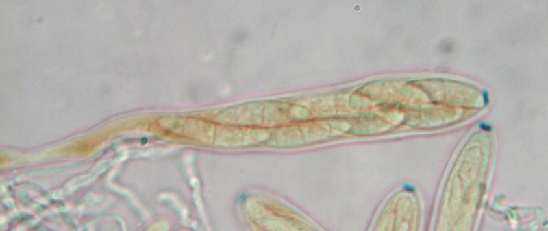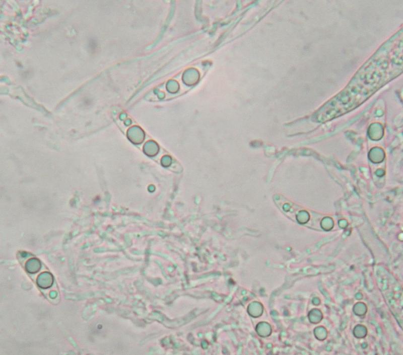 spores multiguttulées dans l'asque, puis à grosses guttules à éclosion de 19 x 5 microns en moyenne