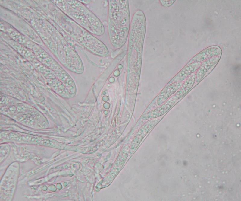aussi minuscules, mais blanc hirsute, réaction IKI nette, asques de 60 à 70 microns sans crosses il me semble