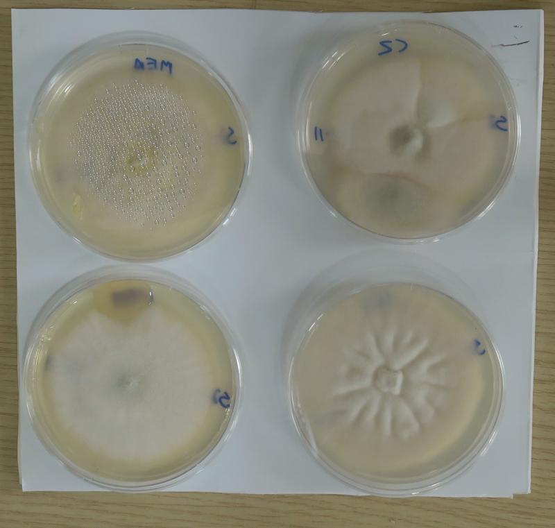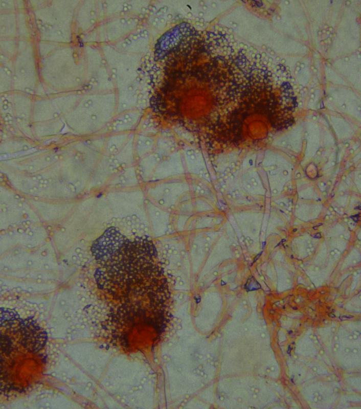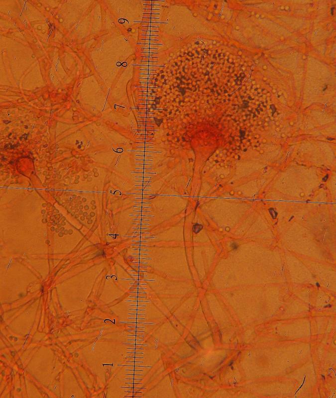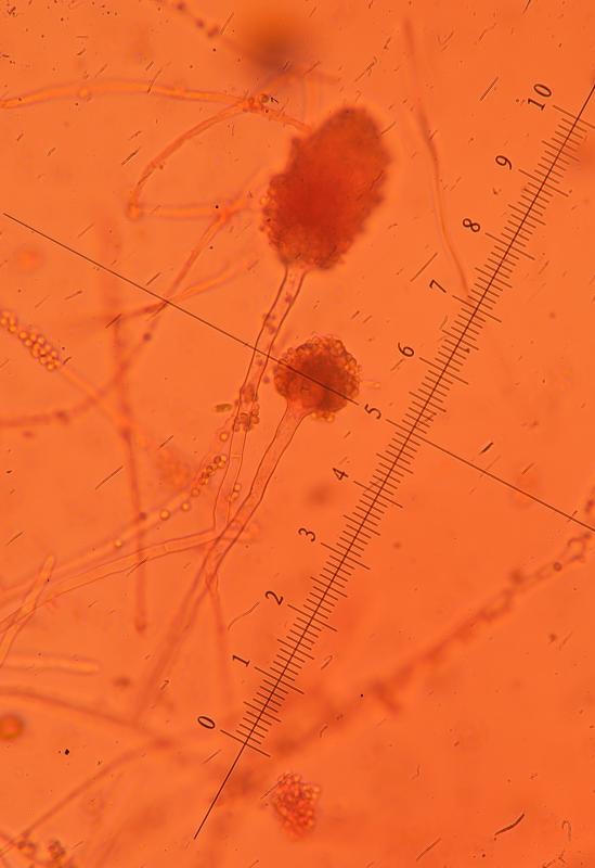 I was trying to recultivate a species of Talaromyces growing on Washingtonia seeds fallen on the soil. The seeds and specimen was dried at room temp. Months later, I tried to recultivate the Talaromyces from the seed husks, kernels, etc and I got instead a range of interesting microfungi including three Aspergillus sp.One of them formed white colonies, fast growing at 24C but on a closer look they had few grey-green conidiophores with shortly columnar conidial heads. The Vesicles were subglobular, 10-18um wide, with one series phialides about 6um long, emerging from about 2/3 of the vesicle (not fully radiating). Conidia in dense inticated chains forming 50-80um columnar or subglobose heads, each conidiospore 2.5um, sphereical, greyish-green. Conidiophores smooth, 60-120um long, 5-7um wide, somewhat expanding below the vesicle (but not always),