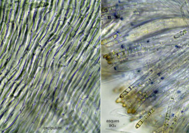 Grand merci pour ton message Andgelo, c'est vrai que ça y ressemble furieusement aussi ! Mais à voir les photos sur Ascofrance et sur le net, les paraphyses et l'excipulum ectal semblent mieux correspondre à Allophylaria macrospora.