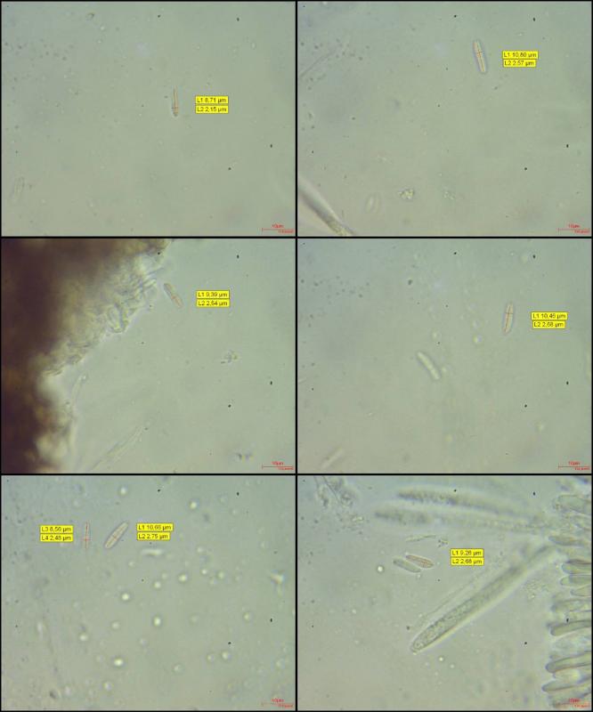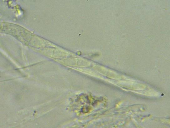 Spores 9.69x2.55um; one-septated; without oildrops