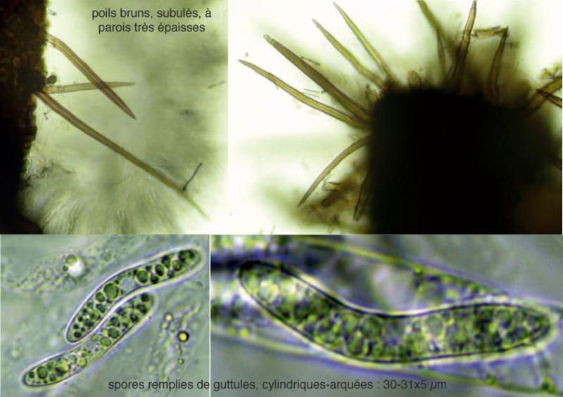 J'utilise la clé de Bernard Declercq et je prends la première option (spores jusqu'à 30-32µm de long et à 0-1 septa) et laisse de côté l'autre option (spores plus longues et à 1-3 septa). En regardant dans sa clé, les spores d'E. strigosa font 30-38x5,5-7 µm, soit trop longues et trop larges pour ma récolte…