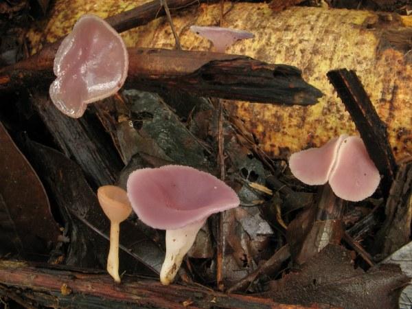 Récolte : forêt équatoriale humide sur débris ligneux, en compagnie de Cookeina speciosa (dont on voit un exemplaire sur la photo en bas à gauche). Guyane française.