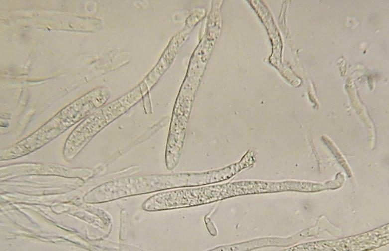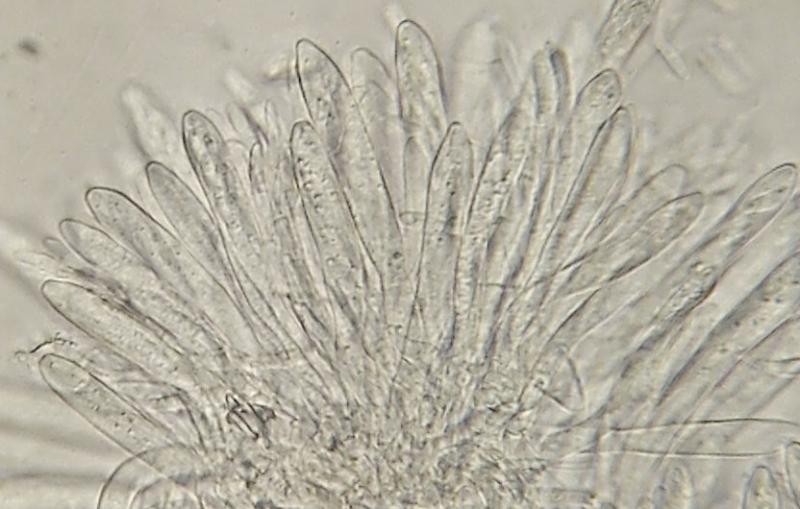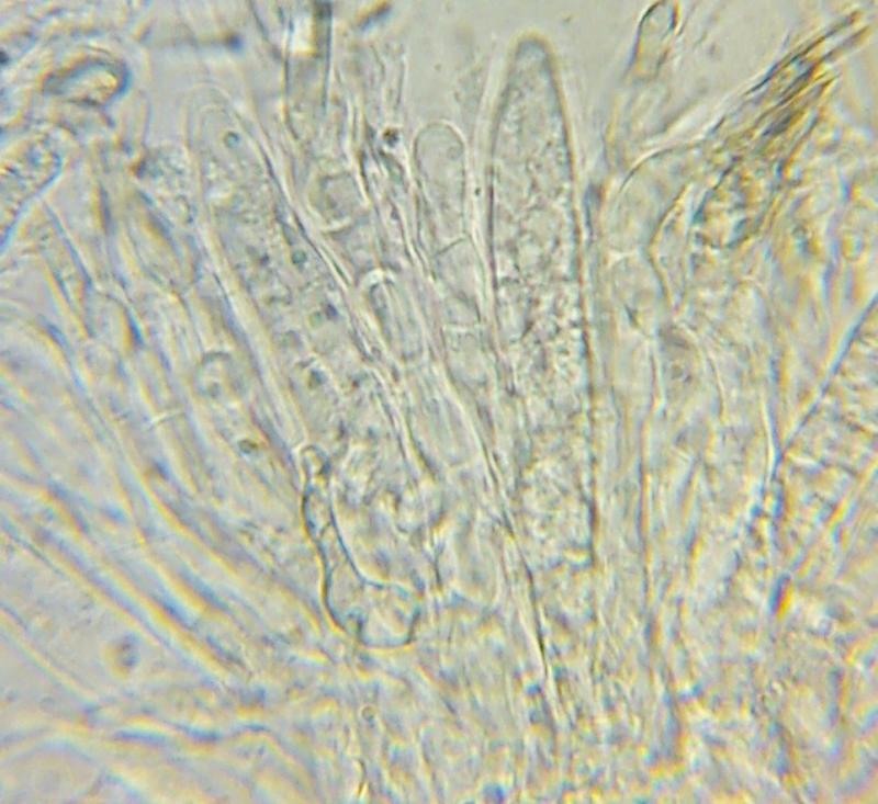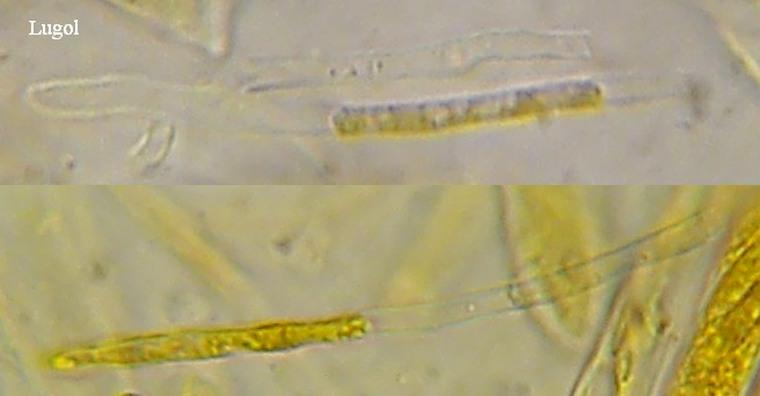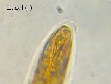 In this case, the sporocarps were very mature. It was difficult to make good documentation. I could not observe any reaction to Lugol.