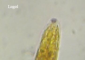 I have no idea, but the foto of the ascus pore in Lugol shows a dirty red reaction in my opinion.