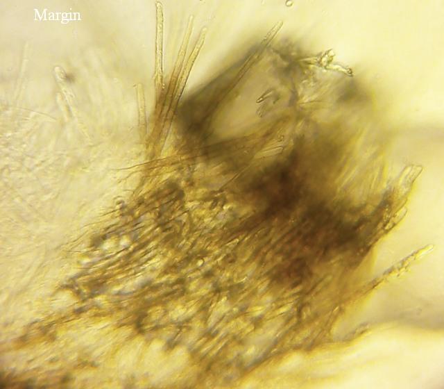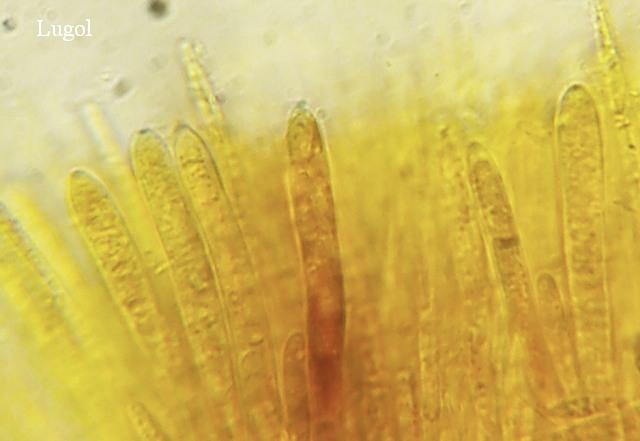 The spores would point to T. subsulphureum, but that species has usually yellow to brown lumps of exudate.