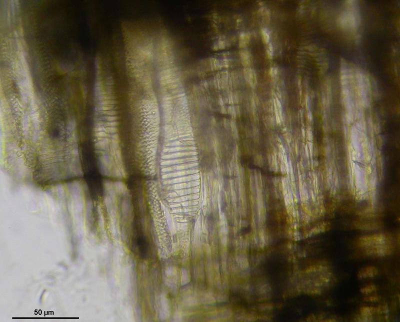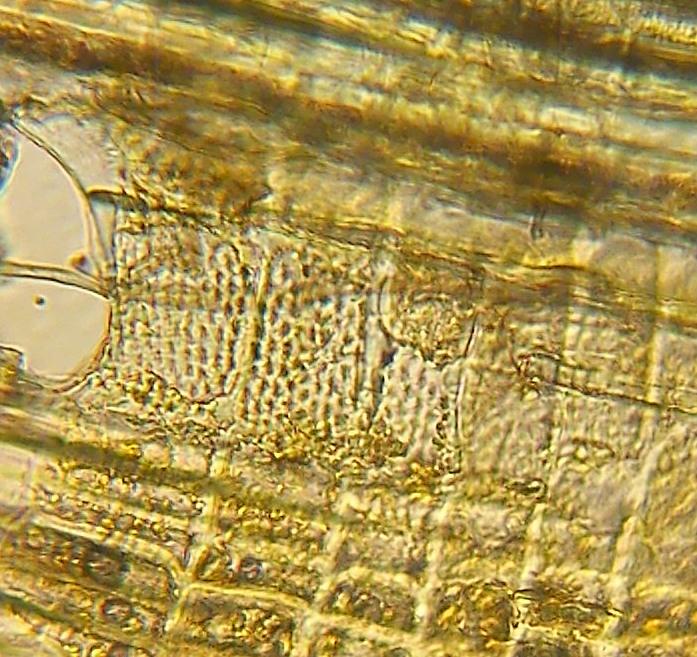 Hmm, from your sections I am not sure. The best to clarify is a radial section in which the pores are hit. What your section shows is only the parenchym fibres. The pores are 3-4-times as wide, and here the connections are important, I attach two photos of Betula. Populus has much larger pits (looking like an eye, third photo).