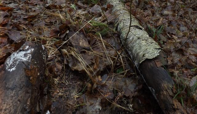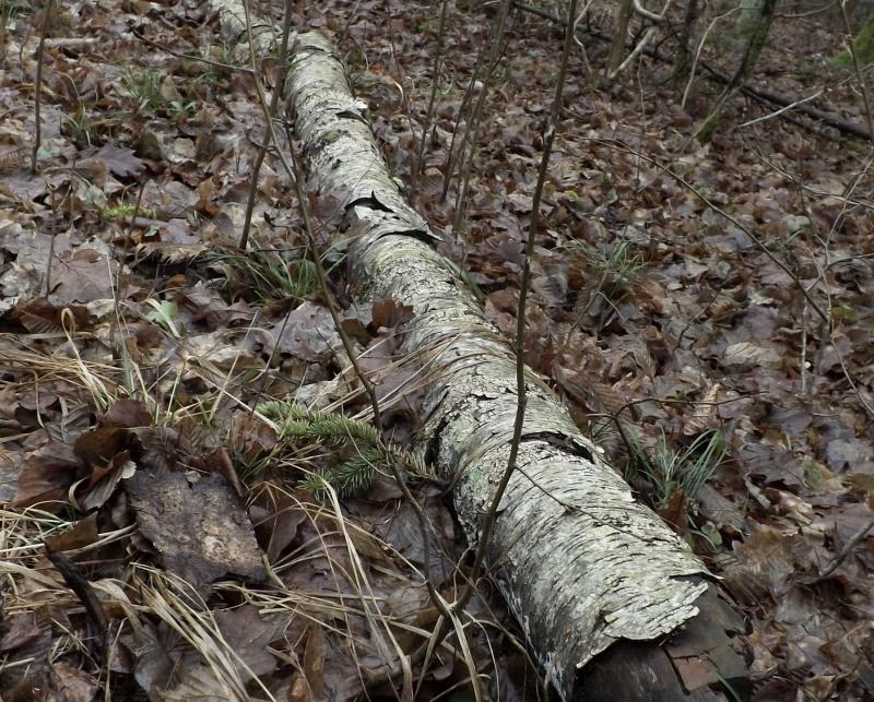 During the fall, the tree cracked into three pieces. They all lay in one row. The fattest was stripped of bark, so I photographed the upper one.