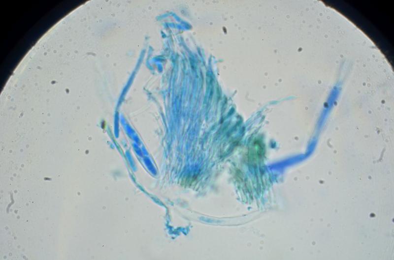 These reddening apos remind me of Calycina heterospora but Congo red is not the best to observe cells contents (in spores and paraphyses) .