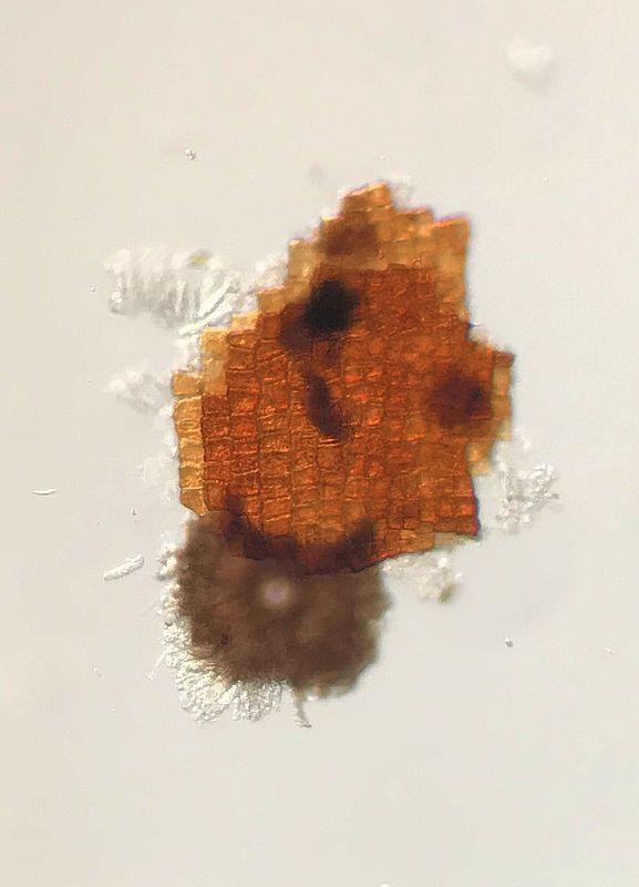 Thyrioth. éparpillés, bruns, 0.2 mm. Leur structure me fait penser à Stomiopeltis.