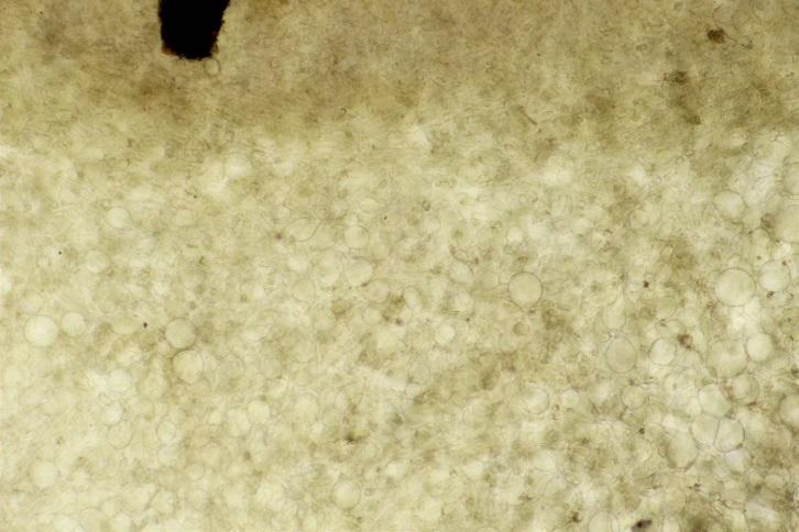 Esto es Peziza saniosa???, tengo algunas dudas, como color de los ascomas, aparentemente sin látex azul, las células del margen tan características que presenta esta recolecta y la ornamentación esporal dudosa, a ver qué pensáis??