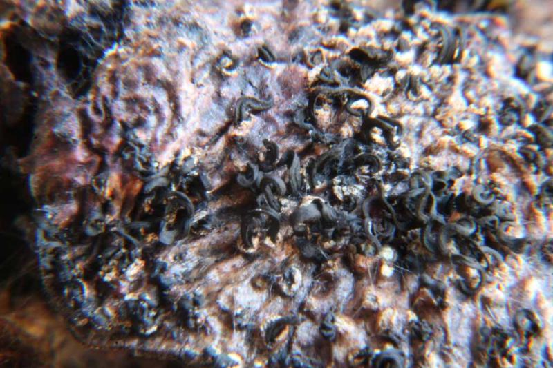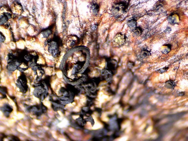 Teneis razon tengo recogida Pestalotiopsis hollandica en el mismo sitio y sustrato, pero no habia desarrollado las protuberancias largas negras,