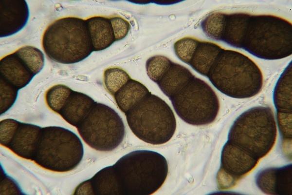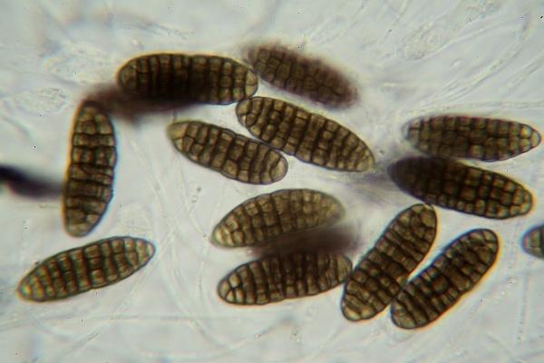 Das ist wahr, noch dazu sind sie dickwandig. Wobei im Syllabus Splanchnonema in den Pleomassariaceen steht, und für die Familie muriforme wie einfach querseptierte Sporen gelten,m außerdem distoseptate nur als "manchmal" vorkommen.