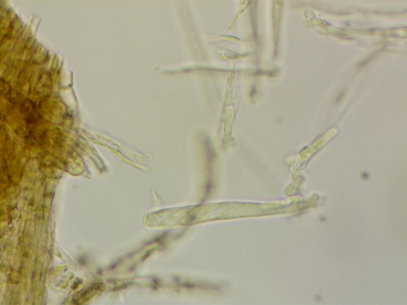 Hairs: septate, congealed with yellow-brown matter.