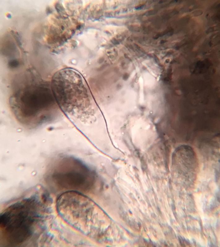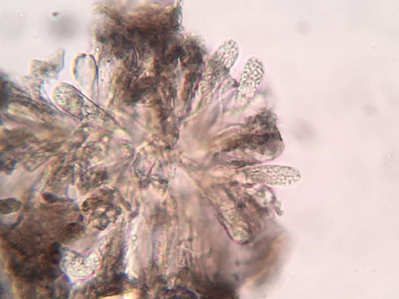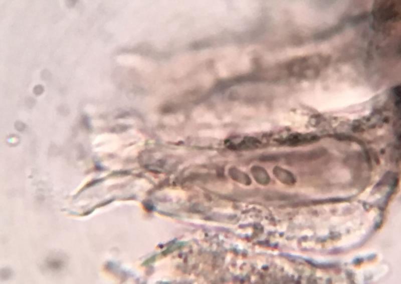 I am returning to this collection from California now that I have more time. I made more precise measurements of the asci which are 38-48.5 x 10-12.5µm. Using the key I arrive at S. microtheca, though I would like to now get better spore measurements to be certain.