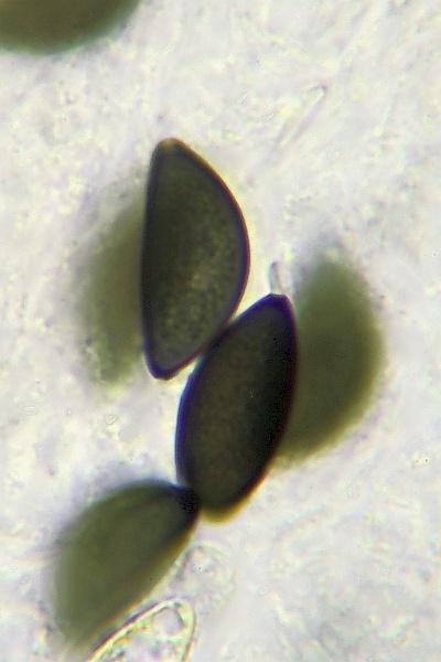 Nice find, infrequent anyway. I think there is no doubt about this species, which is fairly characteristic by the shape of the spores and the hairs (some agglutinated) distributed over the walls.
