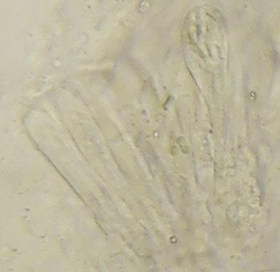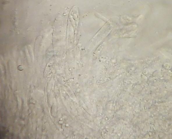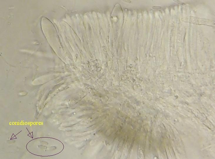 I didn't have time yesterday, so I only took a few pictures. The reason for this was poorly ripe fruit bodies so there was no point in cutting them. Of course, I still grow them and I will try to check everything thoroughly. What I have marked as conidiospores are them. Proper spores are bigger but the pictures have not kept scale so it can be misleading.