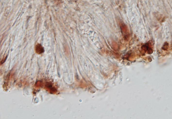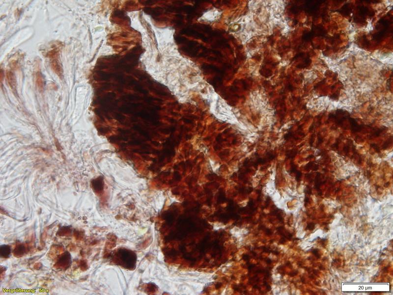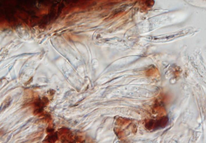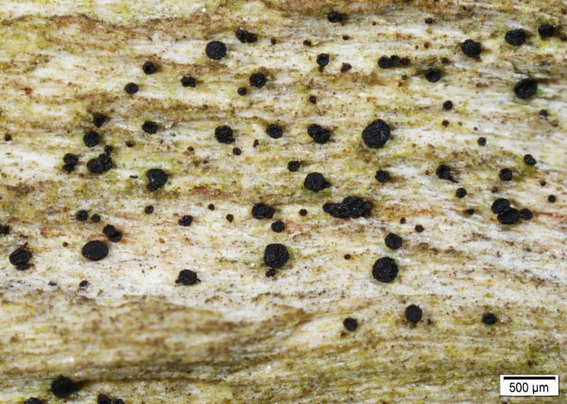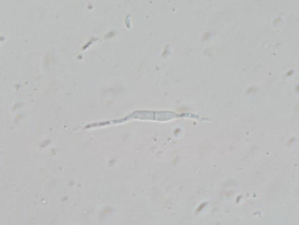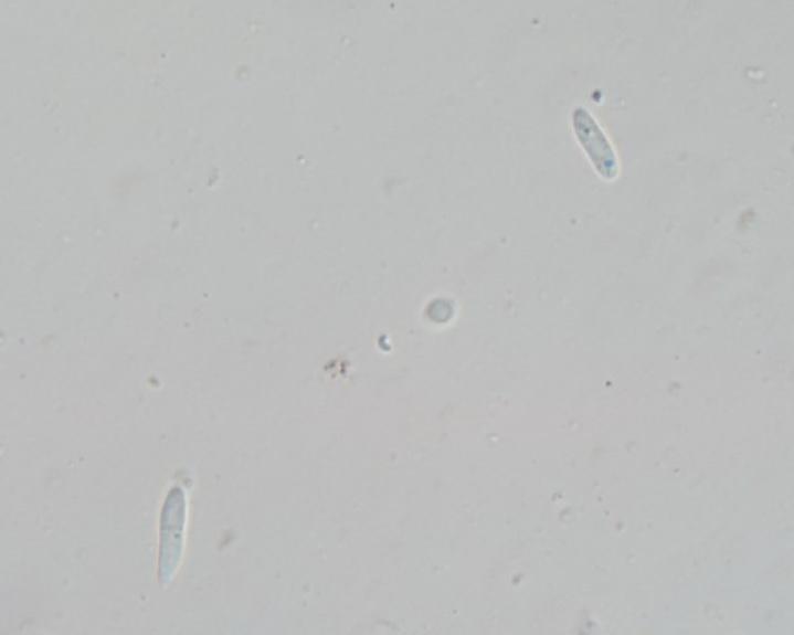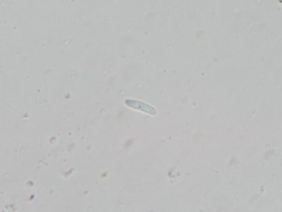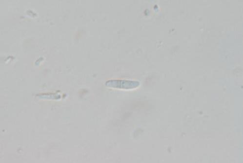 we collected this on a decorticated branch of Malus. Your help is appreciated. The spores measure approx. 9–11 x 2.3–2.8 µm and are one-septate when older, the asci have croziers and are IKI–.