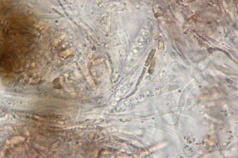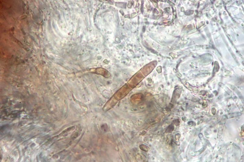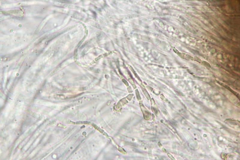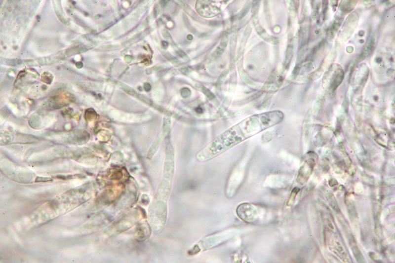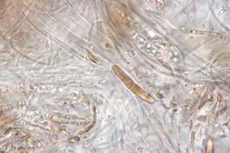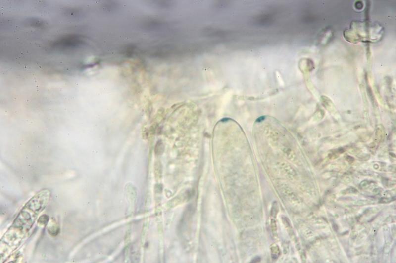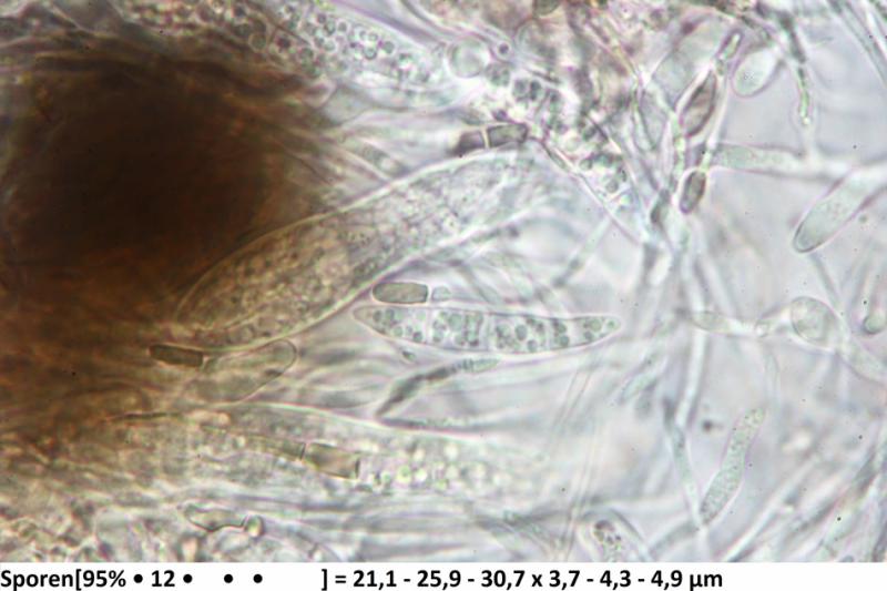 The spores are up to 3-septated and the paraphyses clubbed with drops.