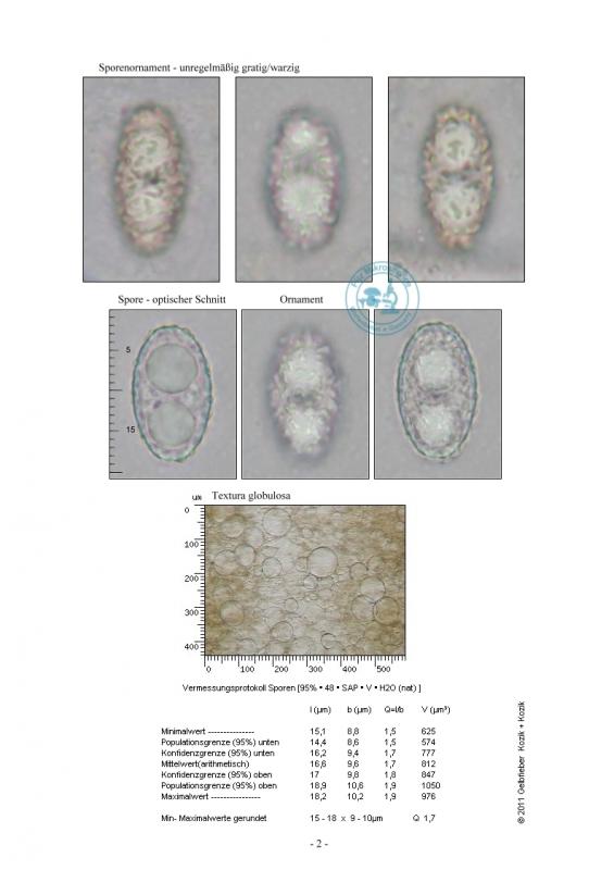 Sporer with two guttules. Separate and coarse warts, 16.4-17.6x8-9.6µm - in water, fresh. Asci amyloid.