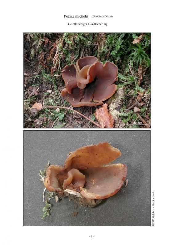 Indeed, Peziza micheli is quite variable but I have never seen it with such a smooth and purple-colored outer surface ??