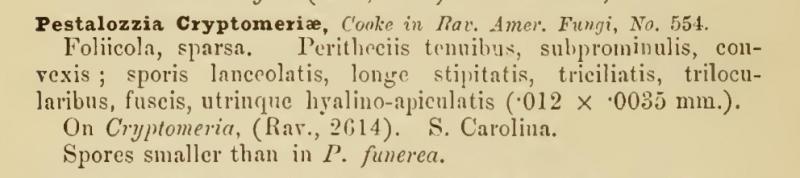 And why not Pestalotia (=Pestalotiopsis ?) cryptomeriae ?