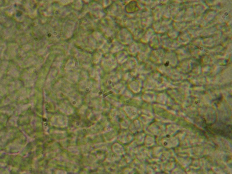 Paroi en textura angularis, cellules de 5-8 µm de diamètre.