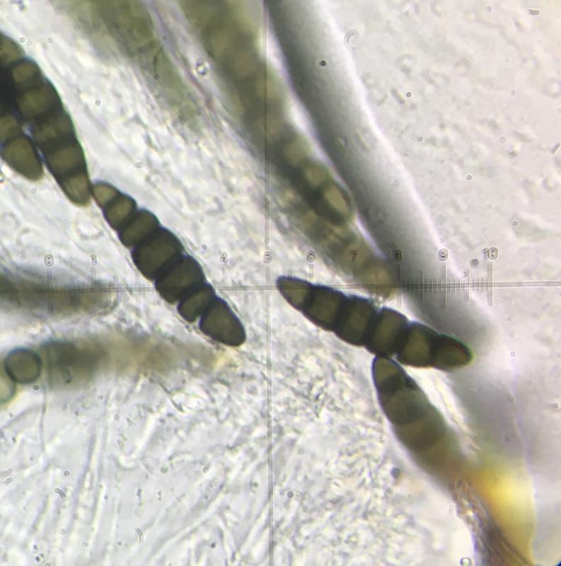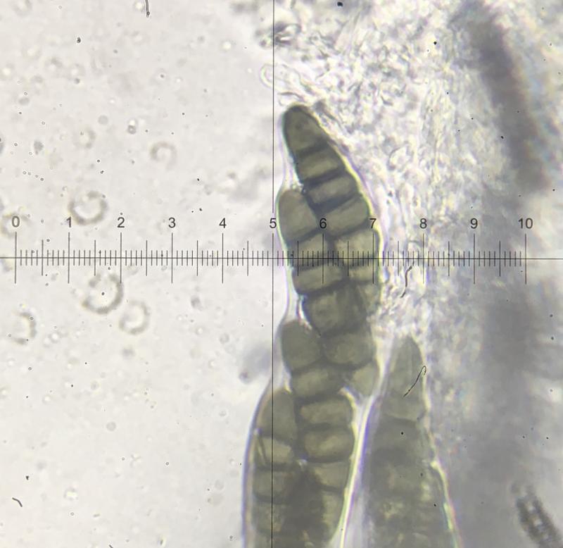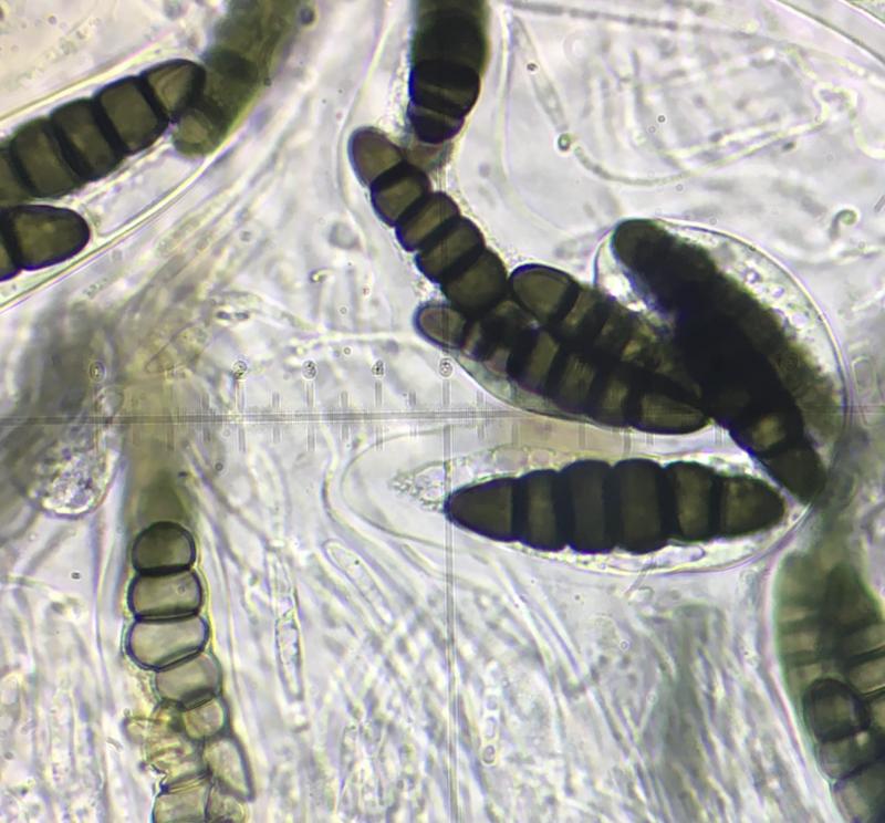Asci 180µm-210µm. Spores 40µm-52µm x 10µm-12µm.