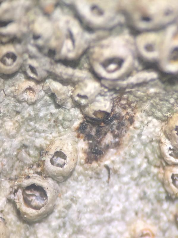need help with species, Opegrapha/ arthonia it seems? Was first thinking on A. Thelotrematis but Spores are to long.