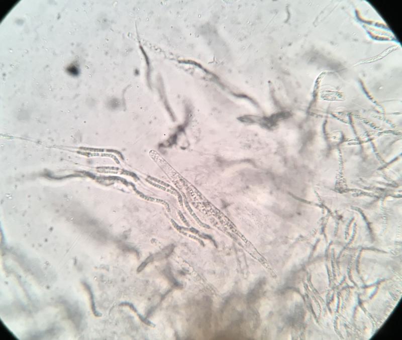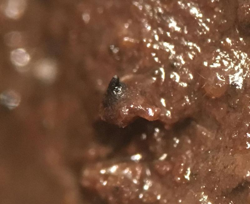 The perithecia are black and immersed in the dung, less than 1mm in diameter, with a protruding neck.