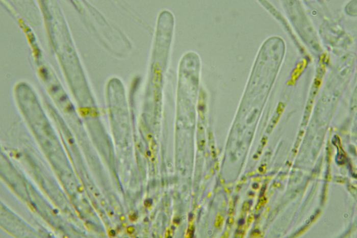 The spores measure 11.6-12.9 x 1.3-1.7 microns and the paraphyses have many bright yellow guttules. Am I right or could this be something else?