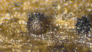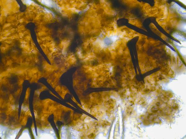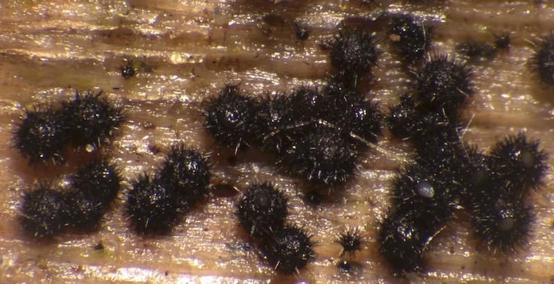 Perithecia globose with a diameter of about 300-400 µm, brown, covered with dark brown setae.
