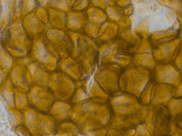 Perithecial wall: Composed of light yellowish-brown, globose to angular, thinwalled cells with a diameter of about 10-18 µm.