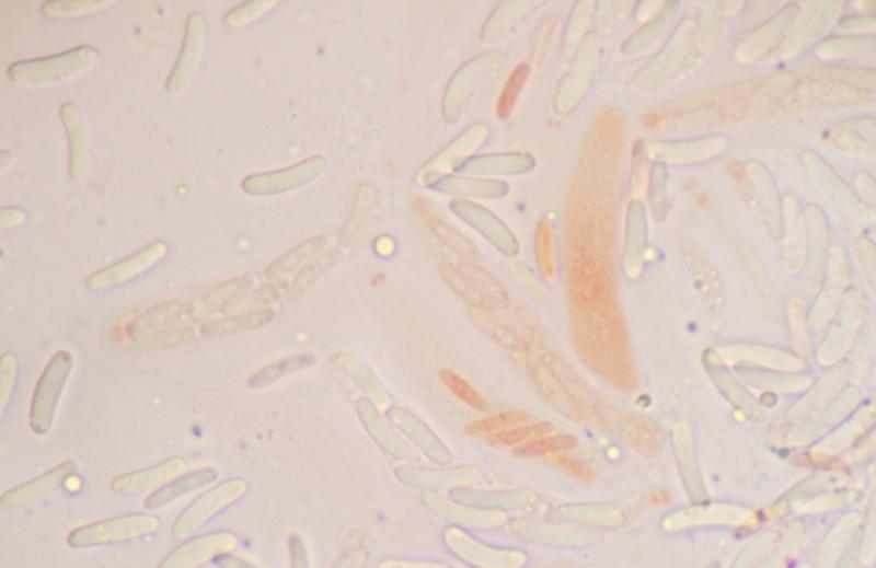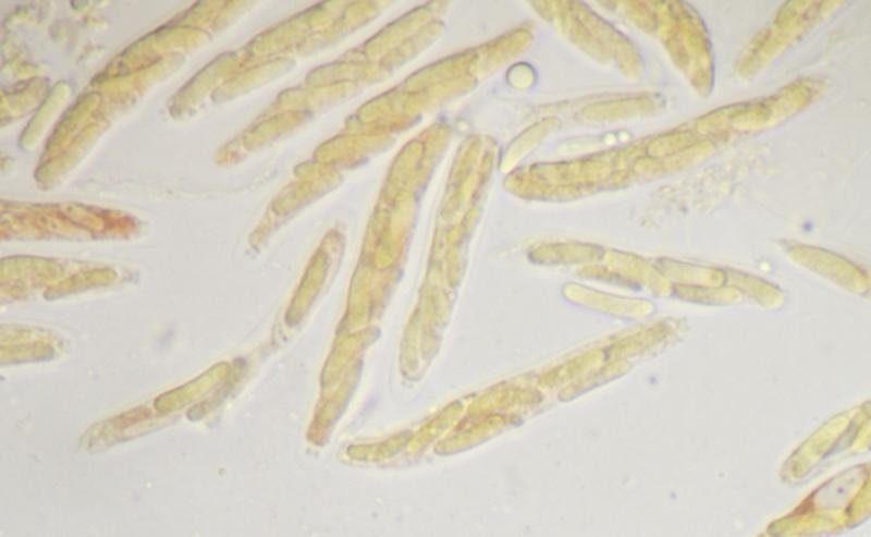 Ascospores (eau) : 7-9,5 x 1,5-1,9 µm, allantoïdes, aseptées, hyalines, lisses.