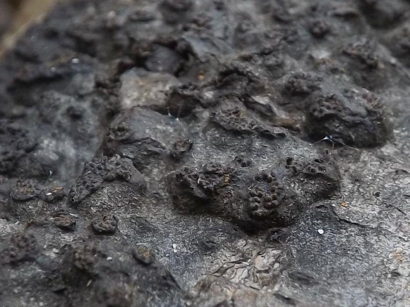 this could be Camarops microspora, which is not rare on Alnus in my experience.