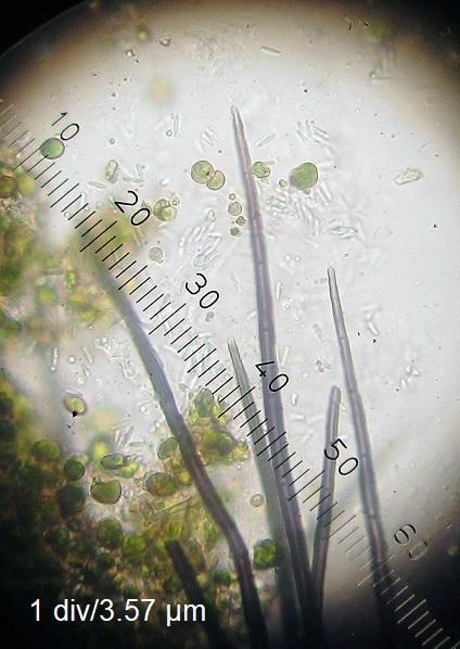 Conidia: 7.3-7.4 x 1.4-1.6 µm Setae: up to 548 µm