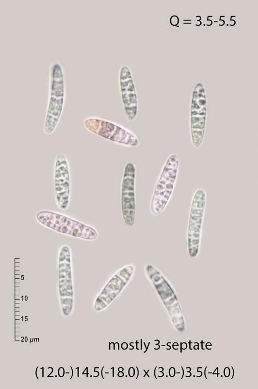 Trouvé sur de la paille. Conidiospores 11,2-12,6