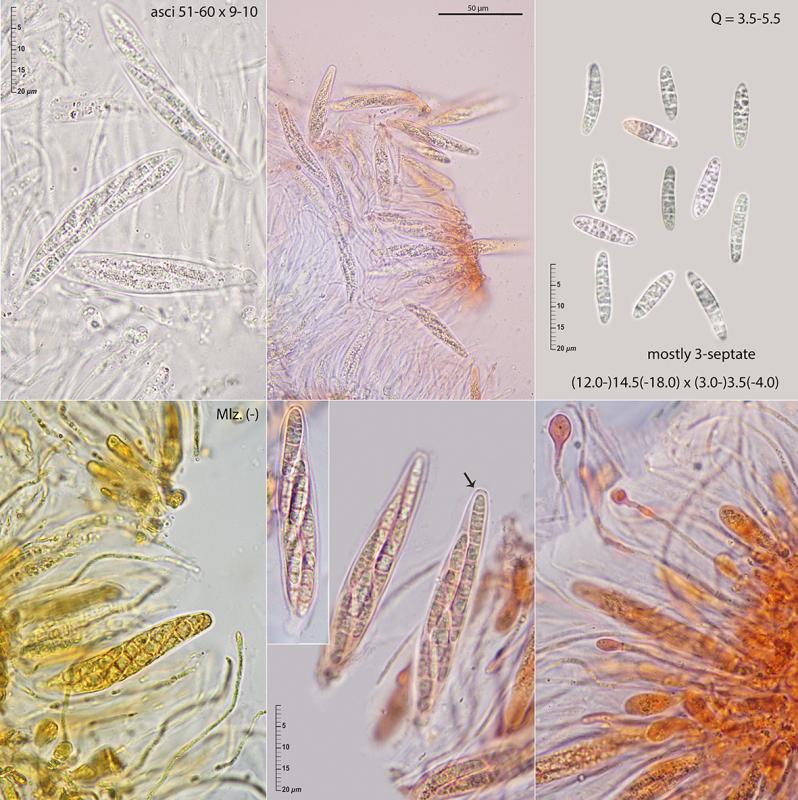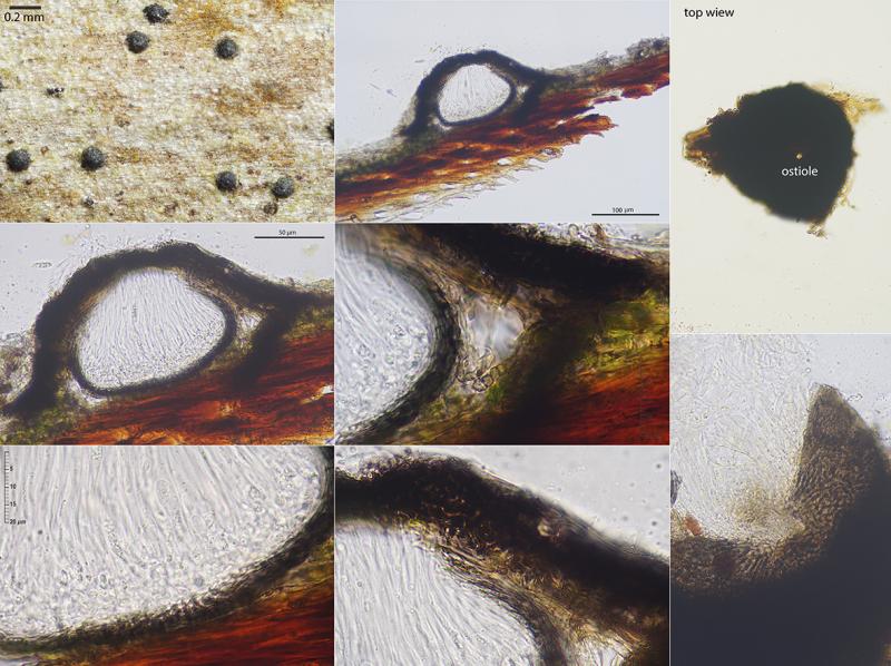 I would like to know your opinion about these completely superficial and ostiolate perithecia covered by a clypeoid structure that grew isolated on Pteridium aquilinum rachis. The gregarious hemispheric or broadly conical ascomata measure 150-200 microns in diameter, the asci have a sharply cut base and a small Melzer negative apical apparatus and contain eight hyaline, narrowly ellipsoid, mostly 3 septate ascospores. The paraphyses are abundant, some of them capitulate.