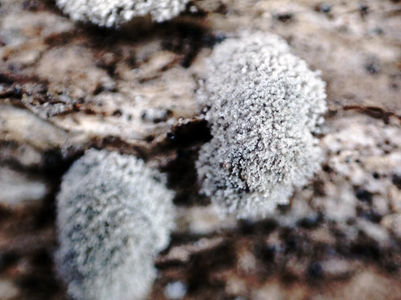 Unas fructificaciones lanosas fotografiadas el 15 de Abril de 2018, sobre un tronco de Hiedra común "Hedera helix"
