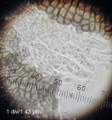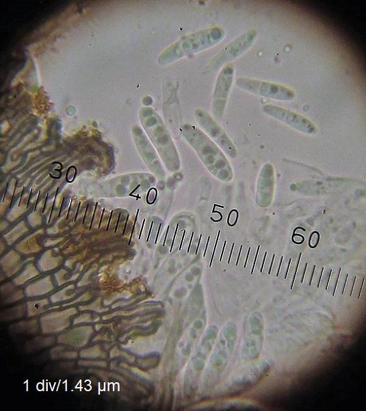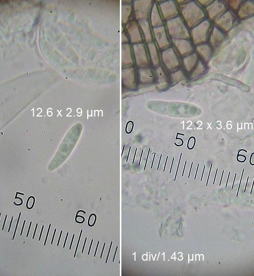 Spore size: 12.2-12.6 x 2.9-3.6 µm