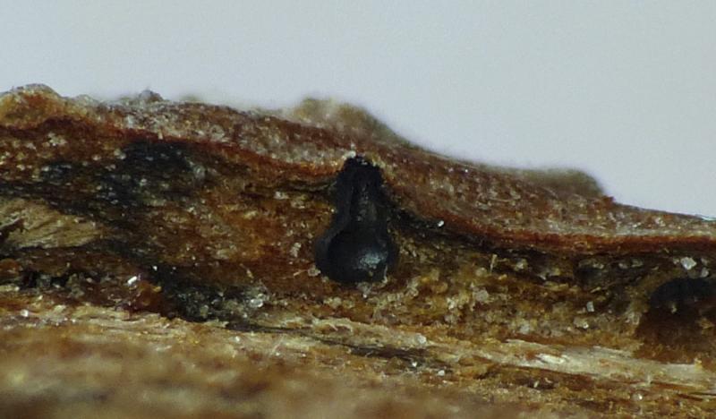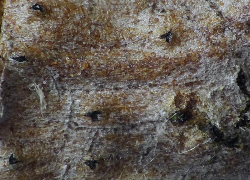 Sur branche morte aérienne de feuillu, probablement Ulmus minor.
