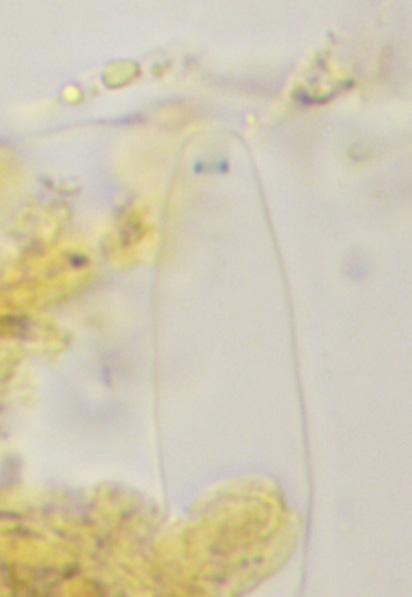 Asques : 170-180 x 8-10 µm, avec un long stipe, à sommet amyloïde (photo dans IKI), contenant beaucoup de spores, env. 20-25.