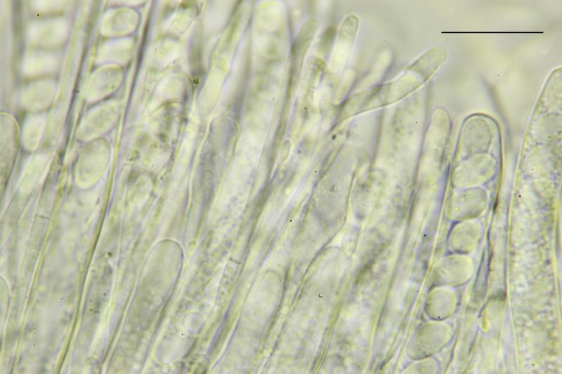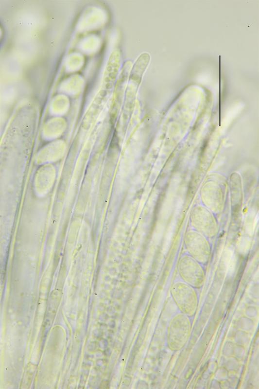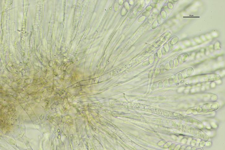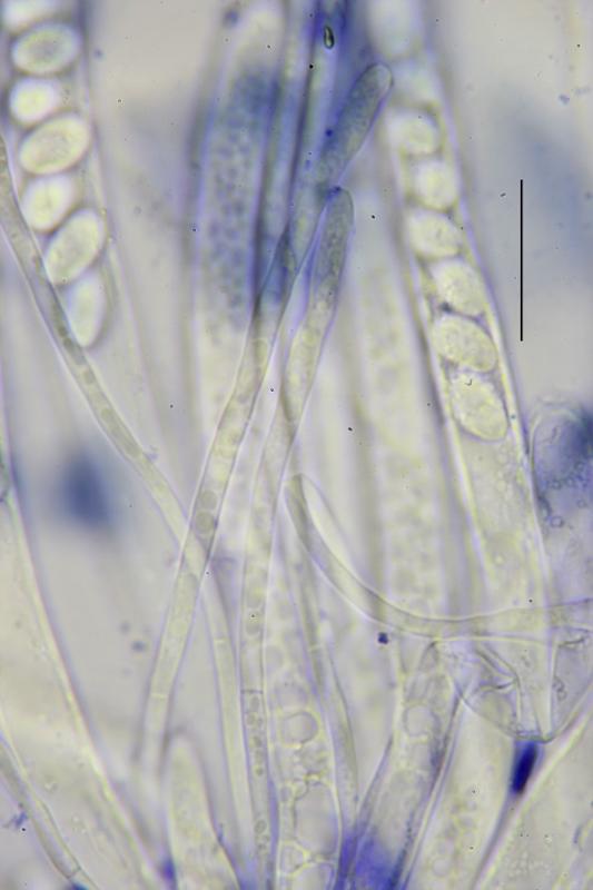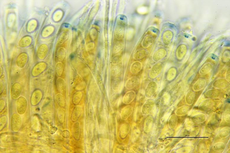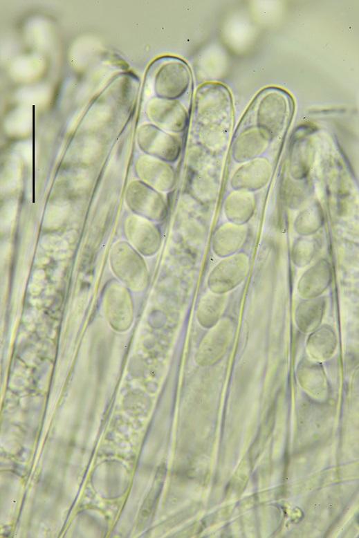 Ascas octospóricas, con croziers, poro apical positivo en IKI.