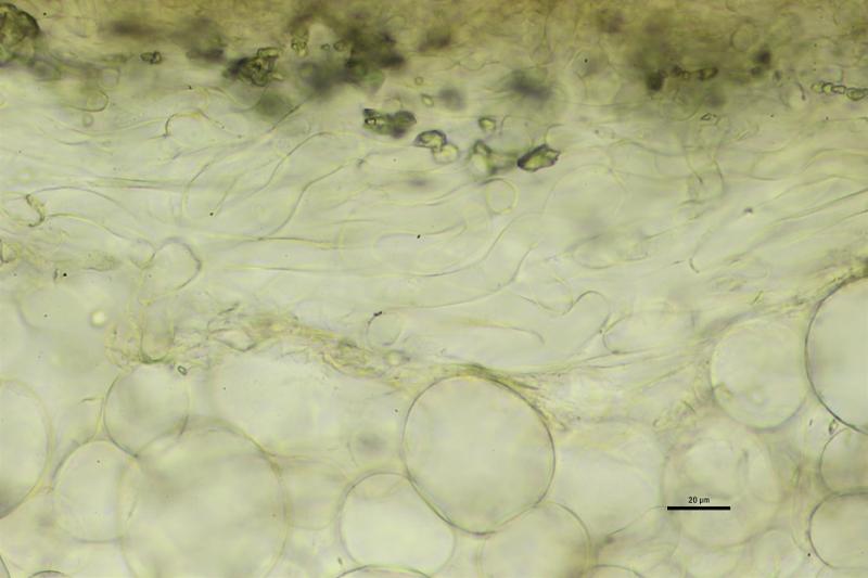 Excípulo ectal de textura globosa, de: 8,51 -58,01 × 8,25-53,89 µm