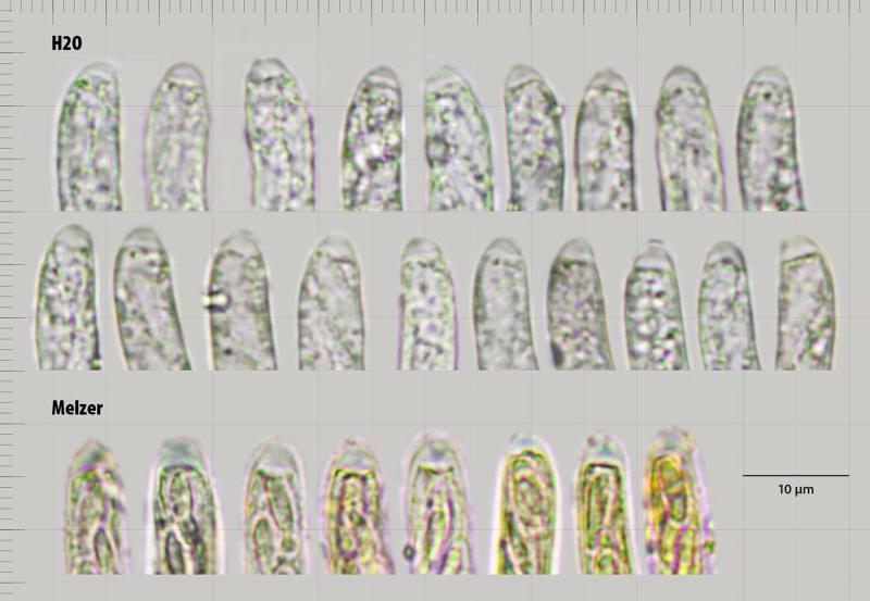 Dear Group!I would like to ask for your help. I found these small apothecia in a marshy, wet area, near alders and Corylus avellana, on an unknown rotten wood. The apothecia turned reddish (from pale yellow) by the time I got home with them. Ascii are positive to Melzer's reagent. I think, this is can be a Hymenoscyphus sp. What do you think, is it possible to get closer? Thanks for any help! (Hungary, Europe)
