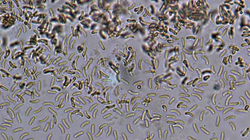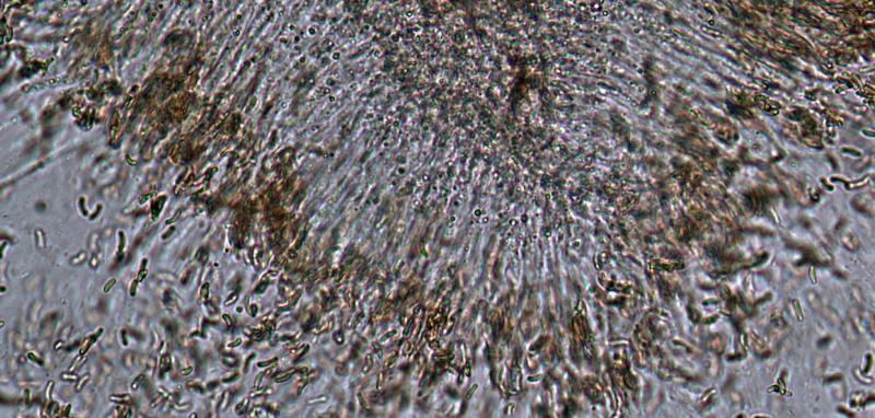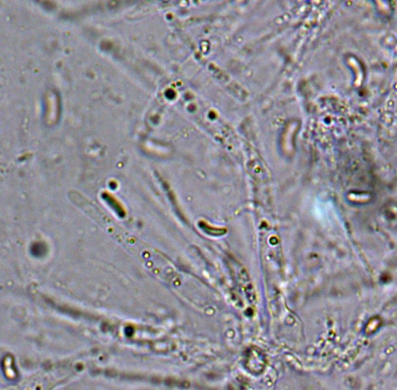 Spores 6,4-7,9 x 1,3-1,8 µm.