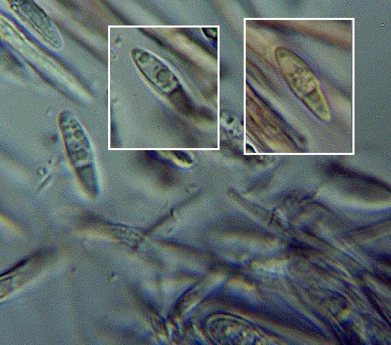 You are correct Otto in that the samples did dry out more than expected and added too much pressure. However, I did take other pics with the original samples and knowing you may need this info then attach this pic showing the sepate appearing along the spore within the ascus.