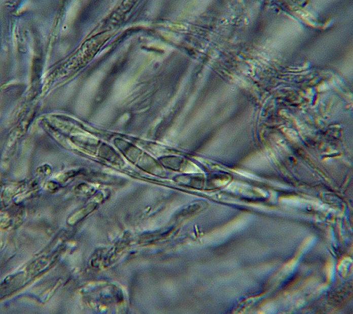 Thank you for your prompt reply. Tried again to see if I had some answers here, inc spores in water showing oil drops, some 4 per spore. Not great but had an issue with oil at 1000x. The substrate was unknown but around Fagus woodland but also where various flowers and shrubs were or had been growing as by open water, so I will need to go back to check for Honeysuckle. The twig I found it on was thornless, featureless, leafless and isolated so could be anything.