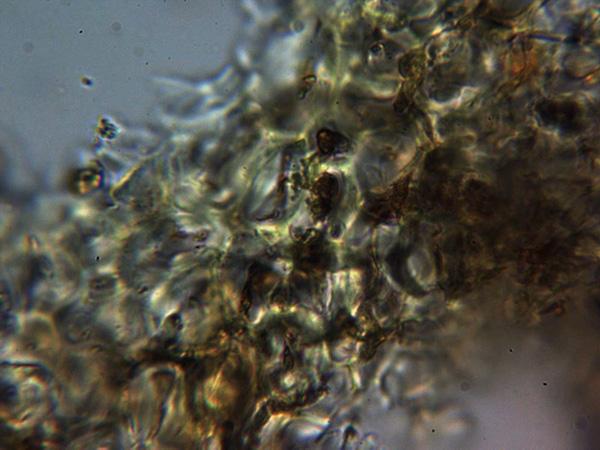 Excluido externo compuesto por hifas mas o menos globosas con unas medidas de 11.7 a 17.9 µm.