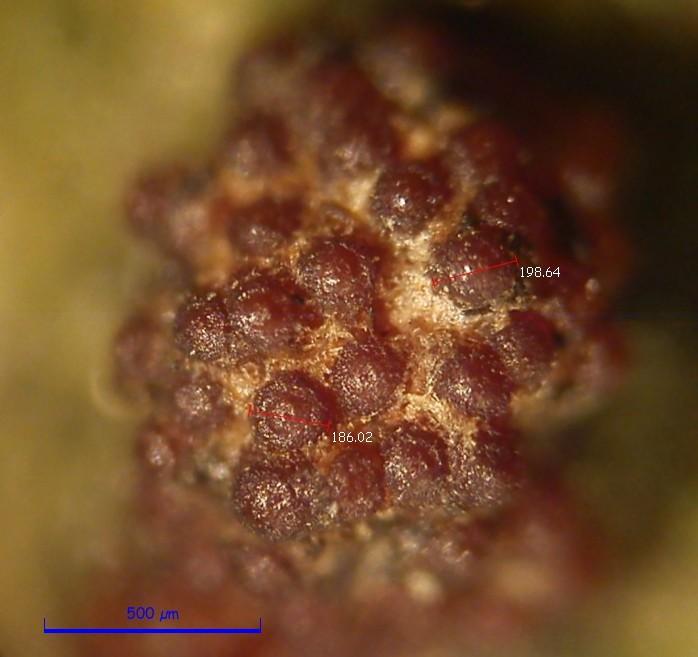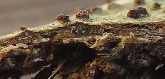 I attach photos. You have more experience with them. Maybe you can see something in my photos, although the sporocarps are very small, and the details are not clearly visible in the pictures.